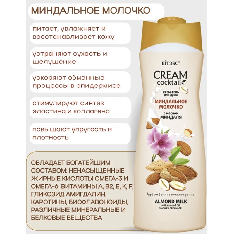 Крем-гель для душа МИНДАЛЬНОЕ МОЛОЧКО с маслом миндаля CREAM Cocktail