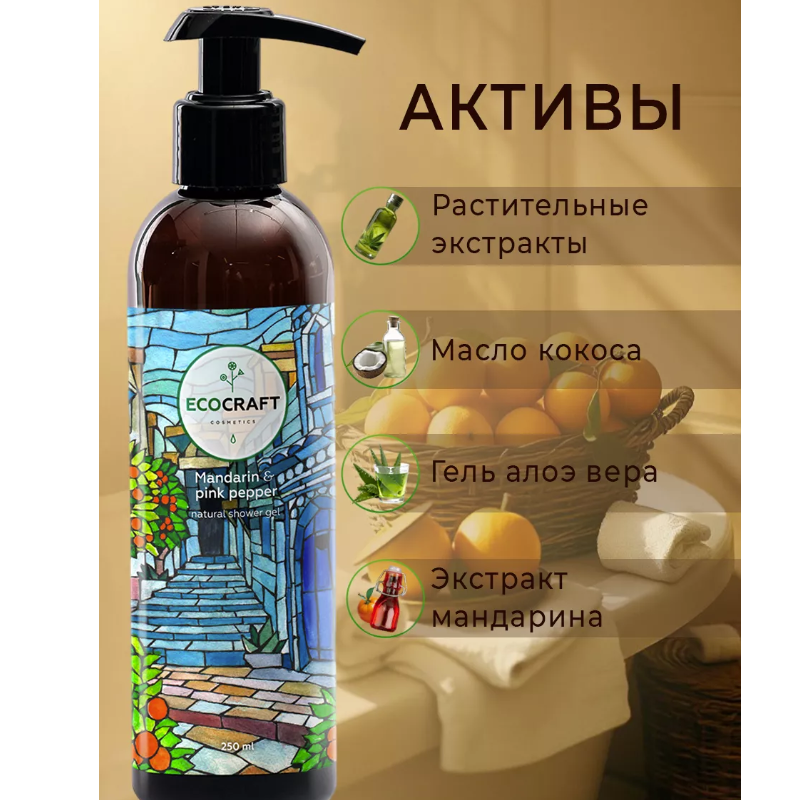 Натуральный гель для душа Мандарин и розовый перец ECOCRAFT