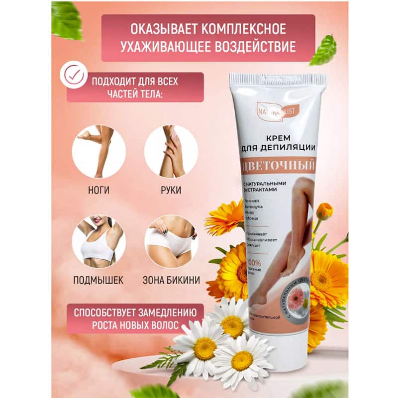 Обеспечивает эффективное и быстрое удаление нежелательных волосков на ногах, руках, в области подмышек и зоны бикини. Крем с натуральными активными компонентами способствует замедлению роста новых волос, оказывает комплексное ухаживающее воздействие, благодаря которому кожа надолго остается нежной и шелковистой. Ощущение непревзойденной гладкости и абсолютного комфорта после депиляции.