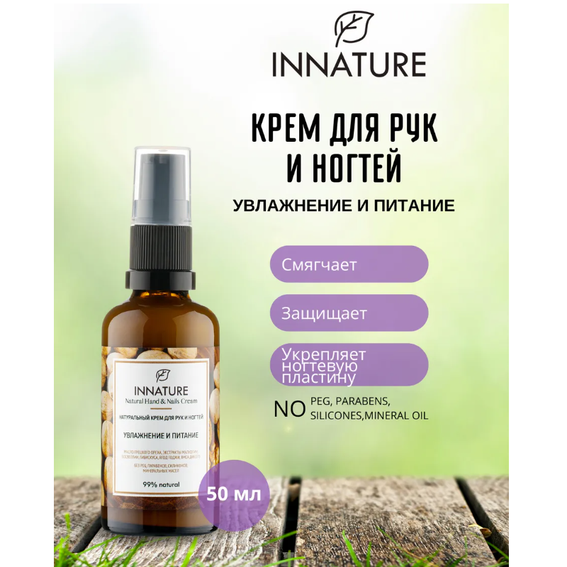 Натуральный крем для рук и ногтей Увлажнение и питание Innature