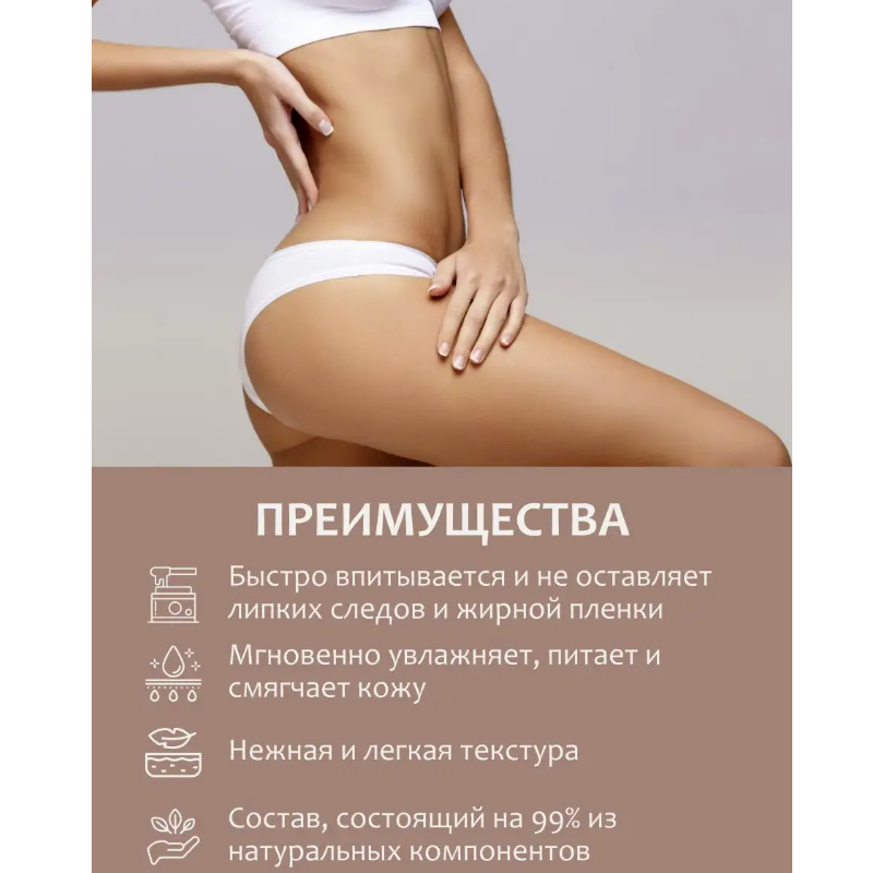 Способ применения: нанести на кожу тела легкими массирующими движениями до полного впитывания. Подходит для ежедневного применения.