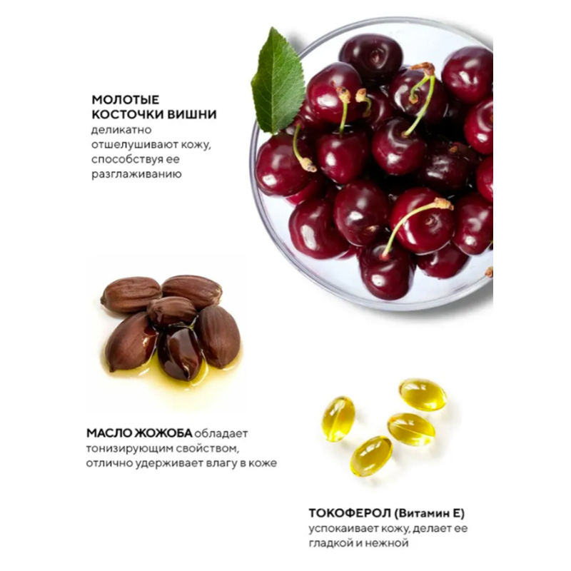 Sugar, Prunus Cerasus Seed Powder (молотые косточки вишни), Vegetable Glycerin, Cetearyl Alcohol, Sodium Cocoamphoacetate, Simmondsia Chinensis Seed Oil (масло жожоба), Vanilla Planifolia Fruit Extract (экстракт ванили), Nicotiana Tabacum Extract (экстракт табака), Tocopherol (Витамин E), Benzyl Alcohol, Sodium Sorbate, Parfum.