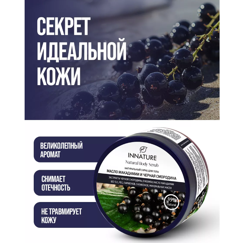 Натуральный скраб для тела Масло макадамии и черная смородина Innature