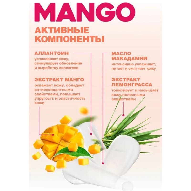 Лосьон обладает нежной текстурой и бодрящим ароматом сочного манго, дарит коже полноценный уход, интенсивно питает, увлажняет и смягчает. Зарядись энергией!