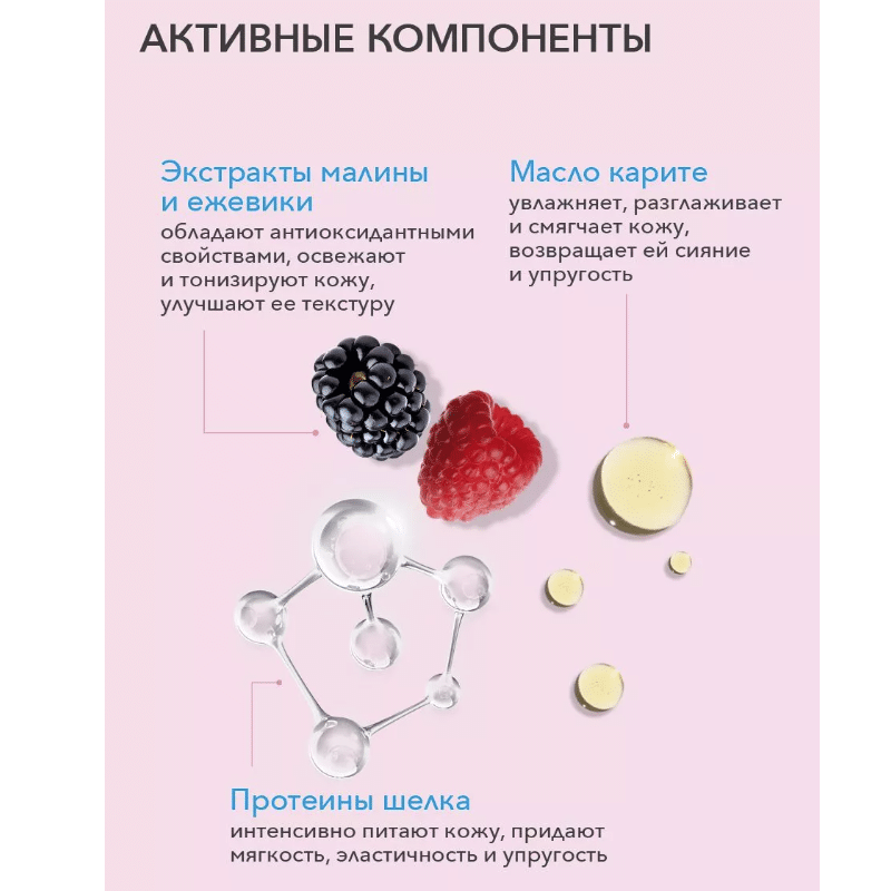 Экстракты малины и ежевики обладают антиоксидантными свойствами, освежают и тонизируют кожу, а также улучшают ее текстуру.