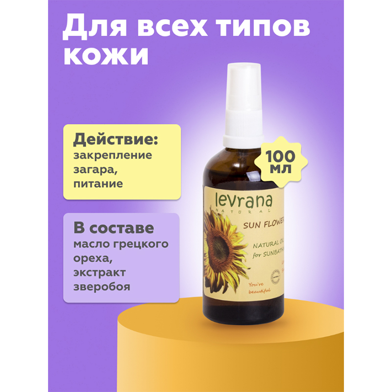 Способ применения: Масло необходимо нанести на чистую кожу во время принятия солнечных ванн.