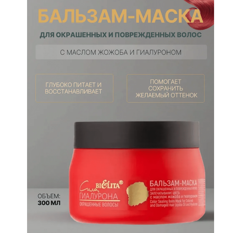 Бальзам-маска для окрашенных и поврежденных волос Запечатывание цвета с маслом жожоба и гиалуроном Сила ГИАЛУРОНА. Окрашенные Волосы
