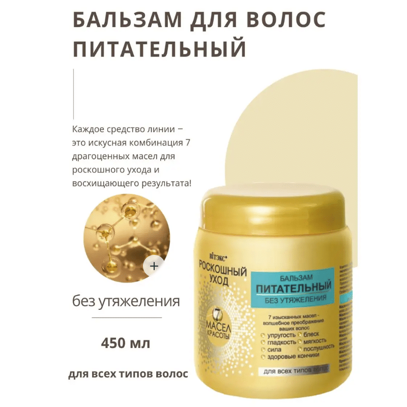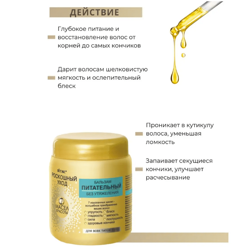 Бальзам питательный БЕЗ УТЯЖЕЛЕНИЯ для всех типов волос Роскошный уход — 7 масел красоты