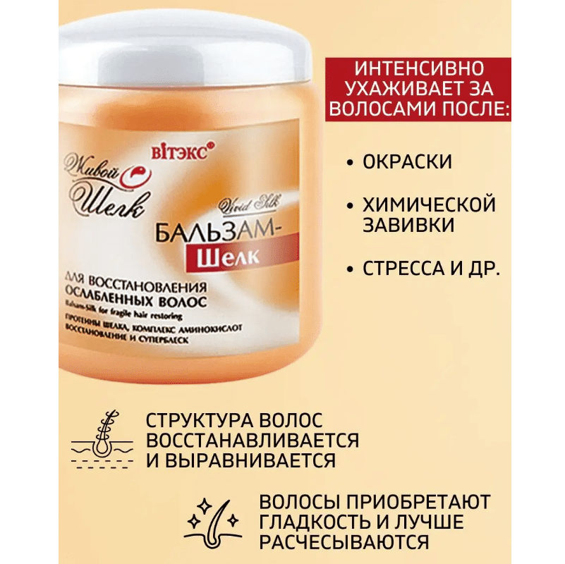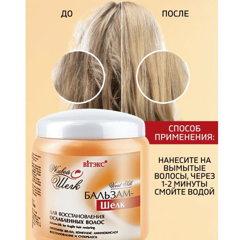 Бальзам – шелк для восстановления ослабленных волос Живой шелк