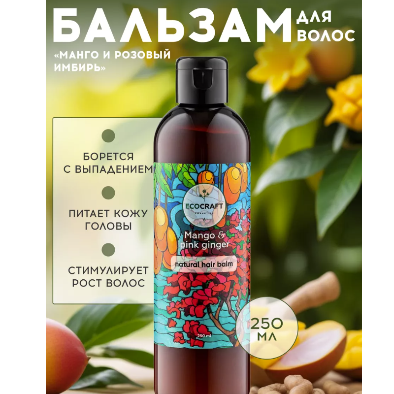 Натуральный бальзам против выпадения и для роста волос Манго и розовый имбирь ECOCRAFT