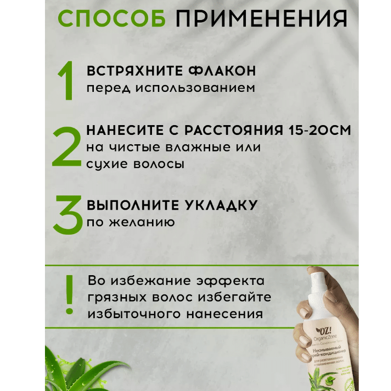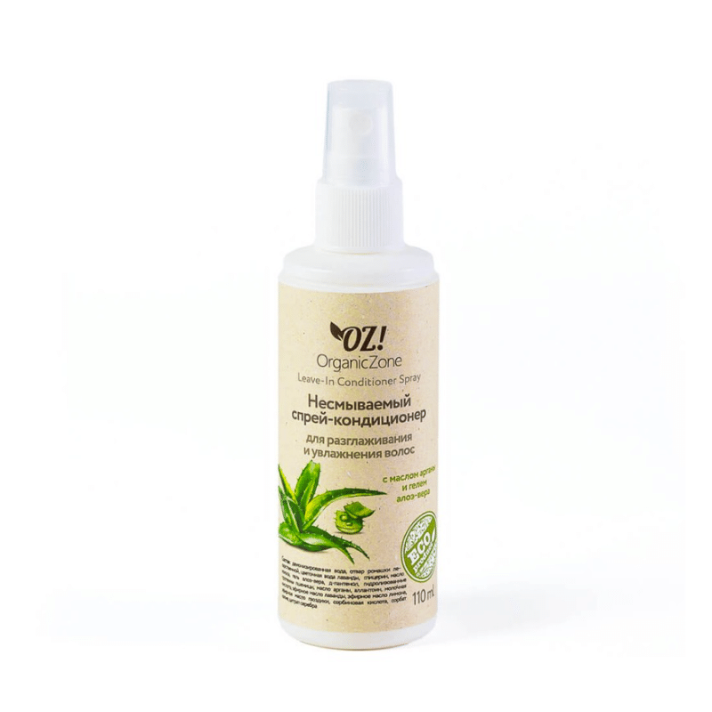 Несмываемый спрей-кондиционер для разглаживания и увлажнения волос с маслом арганы и гелем алоэ-вера OZ! OrganicZone