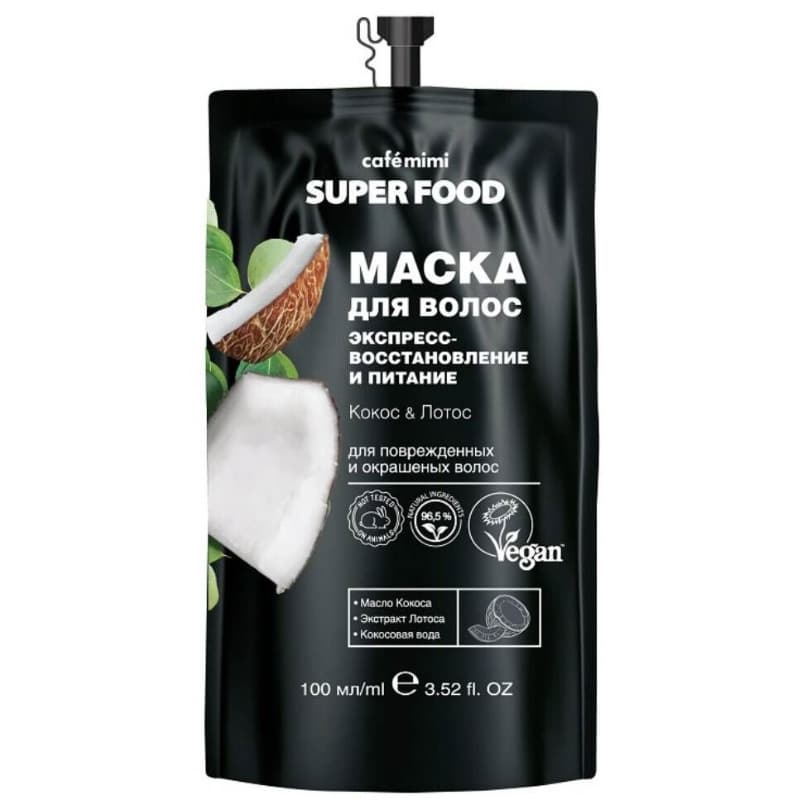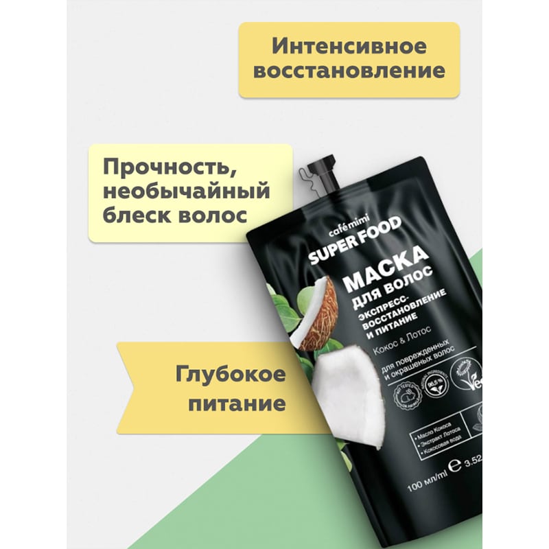 KM SF Маска для волос Экспресс восстановление и питание Кокос & Лотос Cafe Mimi 100 мл