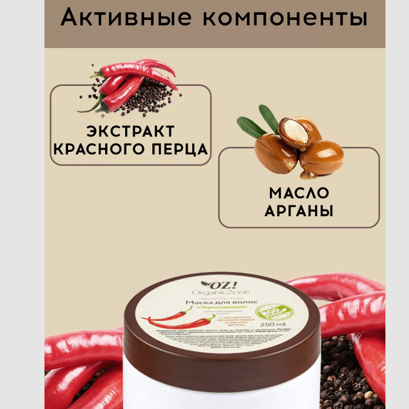 - Экстракт красного перца и горчичное масло стимулируют рост волос.
