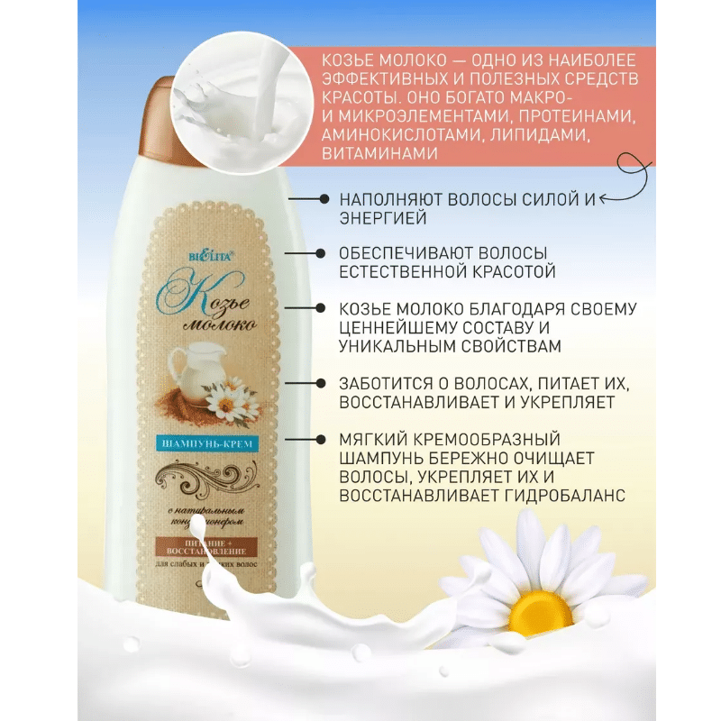 Шампунь-крем с натуральным кондиционером КОЗЬЕ МОЛОКО Кефирно-молочный уход