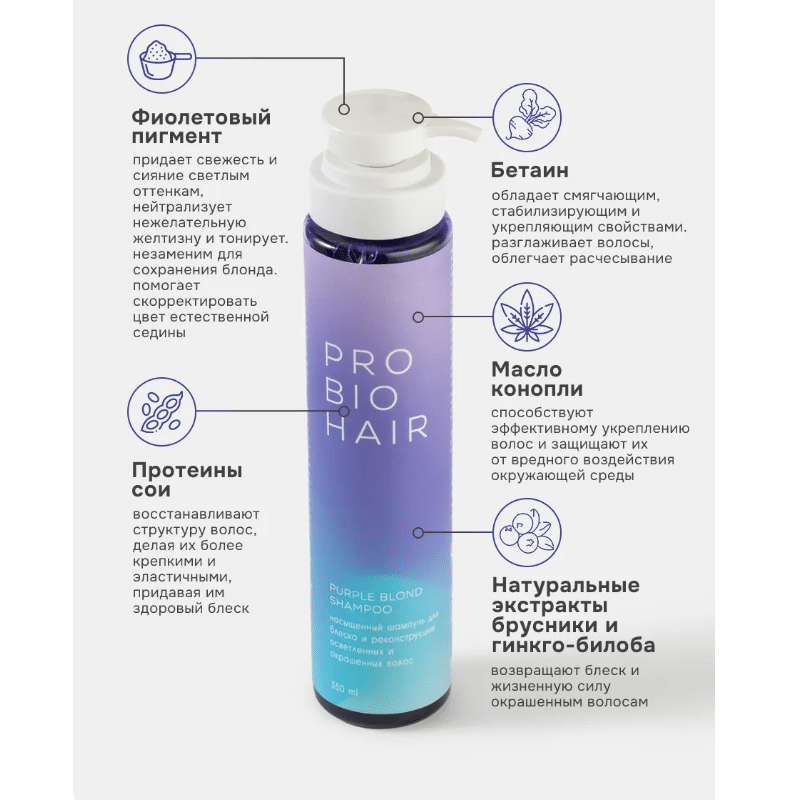 PRO BIO HAIR PURPLE BLOND SHAMPOO, оттеночный шампунь для осветленных волос Levrana