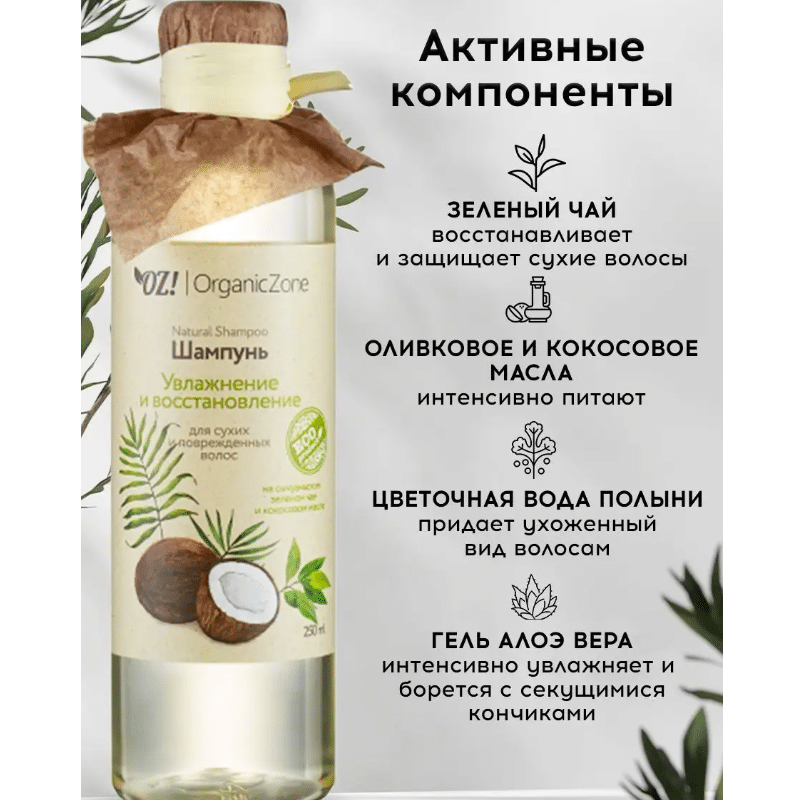Шампунь для волос Увлажнение и восстановление для сухих и поврежденных волос OZ! OrganicZone