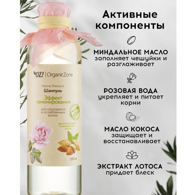 Шампунь для волос Эффект ламинирования для секущихся и ослабленных волос OZ! OrganicZone