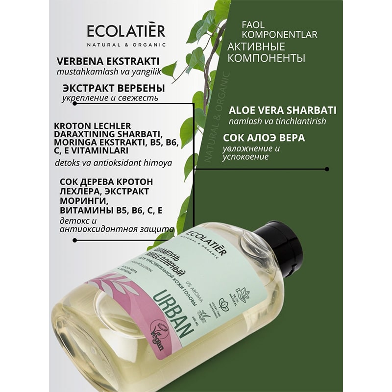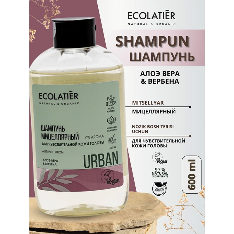 ECL Мицеллярный шампунь для чувствительной кожи головы алоэ вера & вербена ECOLATIER