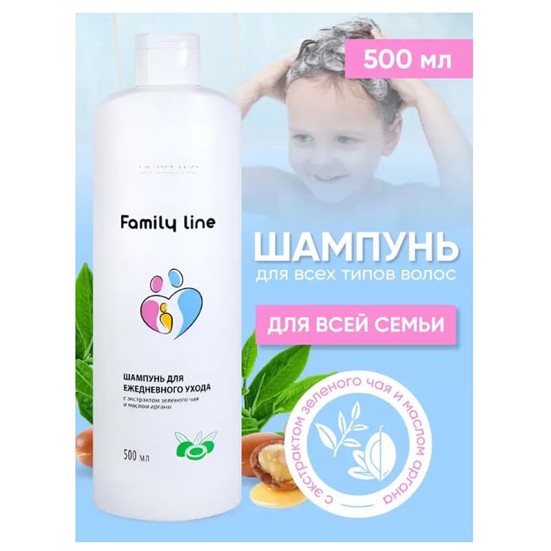 Шампунь для всех типов волос с экстрактом зеленого чая и маслом арганы Family line