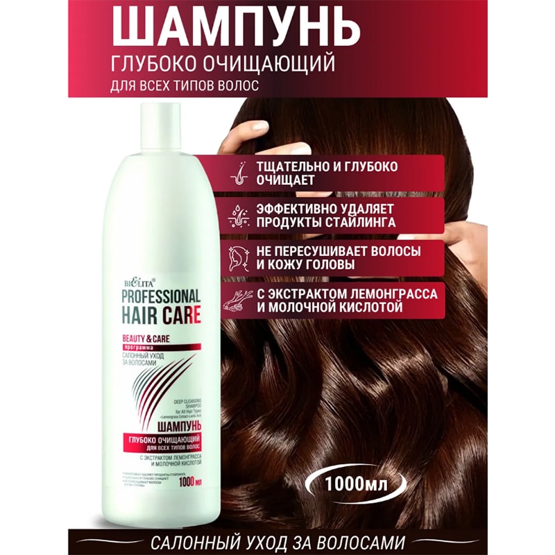 ШАМПУНЬ глубоко очищающий для всех типов волос с экстрактом лемонграсса и молочной кислотой Professional Hair Care