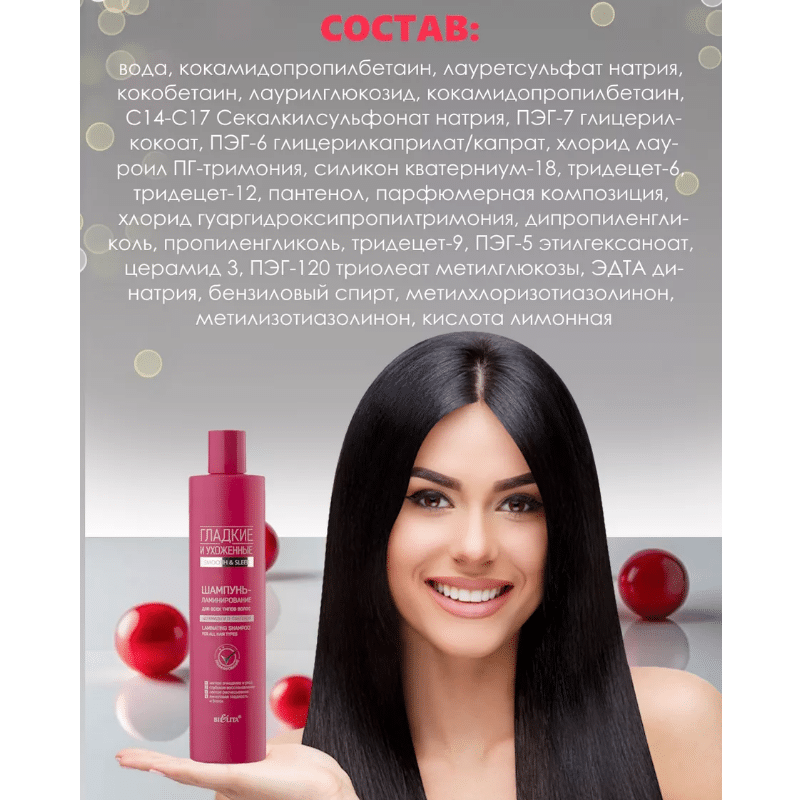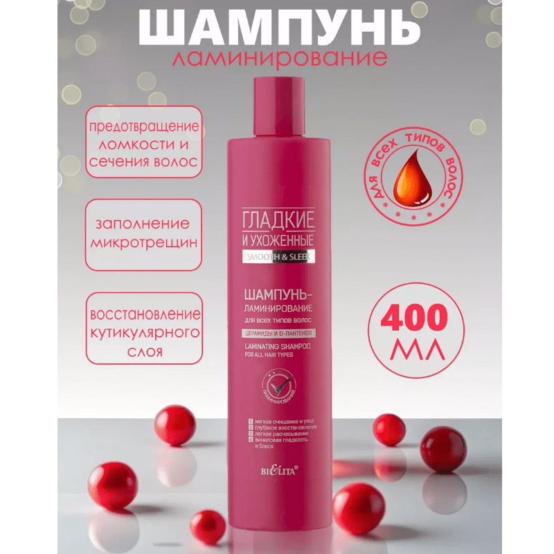 Шампунь-ламинирование мягко очищает, увлажняет и питает волосы, предотвращая их ломкость и сечение. Технология интенсивного восстановления мгновенно преобразует поврежденные, ослабленные и ломкие волосы в чувственно-гладкие и блестящие.