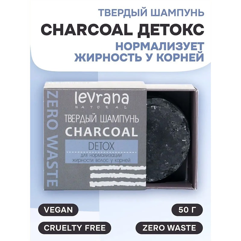 Твердый шампунь Сharcoal детокс ECOCERT Levrana