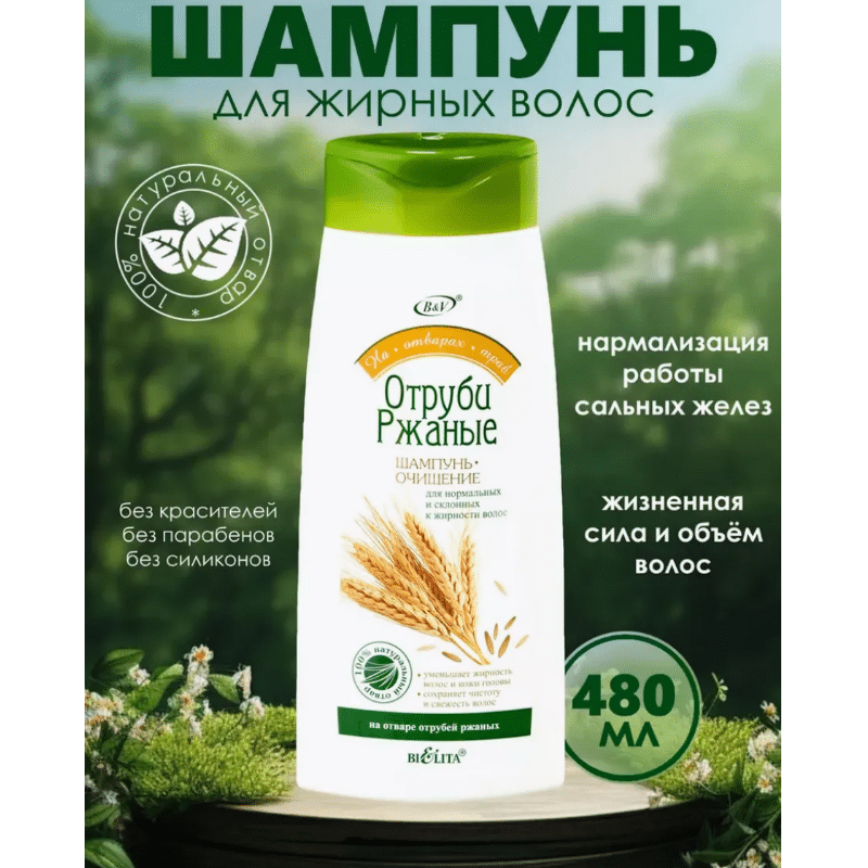 Шампунь-очищение ОТРУБИ РЖАНЫЕ для нормальных и склонных к жирности волос На отварах трав