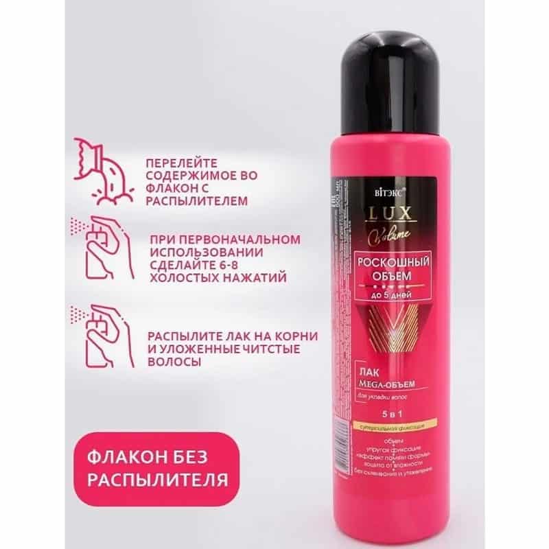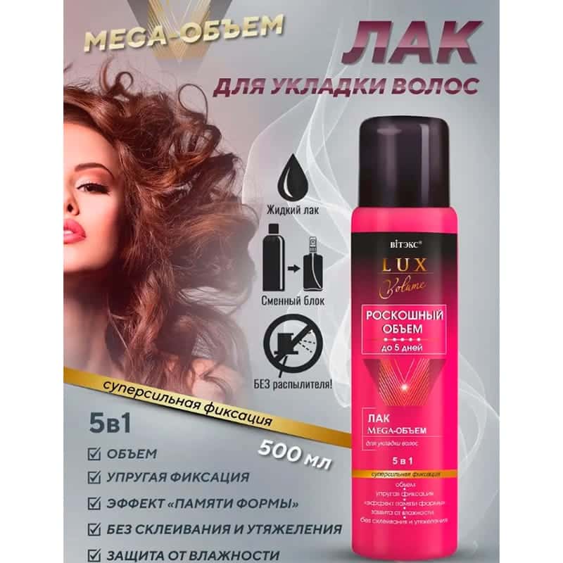 ЛАК Mega-ОБЪЕМ для укладки волос суперсильной фиксации 5 в 1